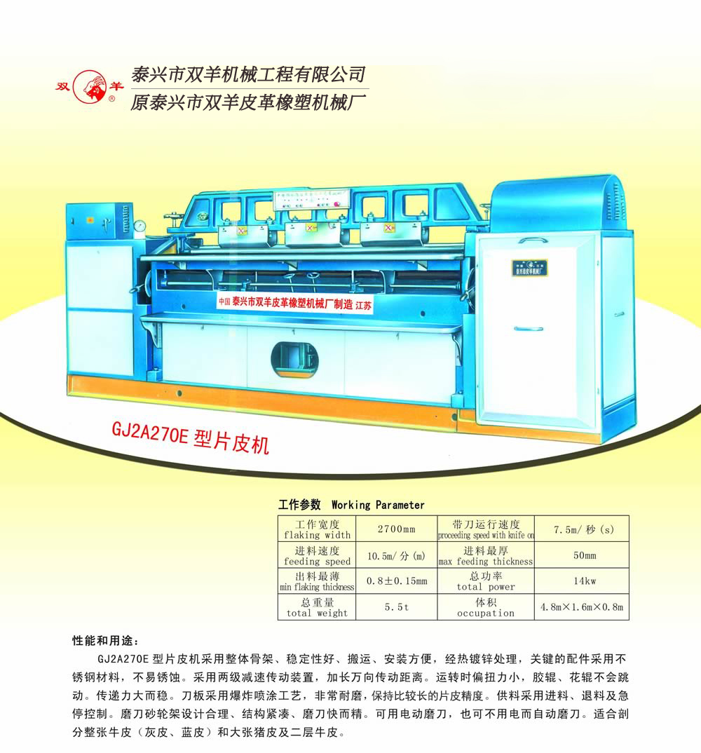 GJ2A270E型片皮機(jī) 發(fā)布者: 發(fā)布時(shí)間:2015-10-23 點(diǎn)擊量: 3104